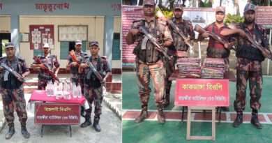 এছাড়াও, কাকডাঙ্গা বিওপি’র বিশেষ আভিযানিক দল কলারোয়ার গেড়াখালী মাঠ থেকে ৬৩ হাজার টাকা মূল্যের শাড়ি, চান্দুরিয়া বিওপি’র বিশেষ আভিযানিক দল একই স্থান হতে ১ লাখ ৪০ হাজার টাকা মূল্যের ভারতীয় ঔষধ, কুশখালী বিওপির বিশেষ আভিযানিক দল শ্মশ্বান ঘাট হতে ৩৫ হাজার টাকা মূল্যের ভারতীয় শাড়ি. তলুইগাছা বিওপির বিশেষ আভিযানিক দল কেড়াগাছি হতে ১ লাখ ৫ হাজার টাকা মূল্যের ভারতীয় ঔষধ, ঝাউডাঙ্গা বিশেষ ক্যাম্প আভিযানিক দল সাতক্ষীরা সদরের হরিণি থেকে ৭০ হাজার টাকা মূল্যের ভারতীয় ঔষধ, ঝাউডাঙ্গা বিশেষ ক্যাম্প আভিযানিক দল সাতক্ষীরা সদরের হরিণি থেকে ৭০ হাজার টাকা মূল্যের ভারতীয় ঔষধ, ঘোনা বিওপির বিশেষ আভিযানিক দল বারোপোতা স্কুল মোড় হতে ৪ হাজার টাকা মূল্যের ভারতীয় পাতার বিড়ি এবং গাজীপুর বিওপির বিশেষ আভিযানিক দল ৭০ হাজার টাকা মূল্যের ভারতীয় ঔষধ আটক করে। বিজিবির আভিযানিক দলগুলো সর্বমোট ৮ লক্ষ ৪৫ হাজার ৫শত টাকা মূল্যের বিভিন্ন চোরাচালানী মালামাল আটক করে।