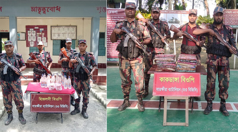সাতক্ষীরায় ৩৩ বিজিবির অভিযানে ২০ বোতল ভারতীয় মদসহ ৭ লক্ষাধিক টাকার মালামাল জব্দ