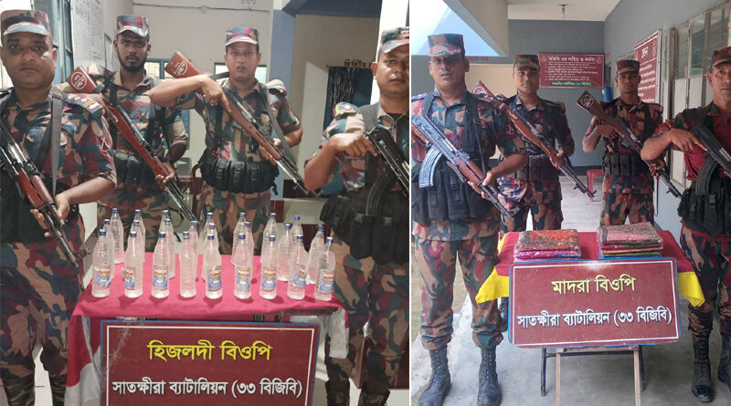সাতক্ষীরার সীমান্ত থেকে ২৪ বোতল ভারতীয় মদসহ ১০ লক্ষাধিক টাকার মালামাল জব্দ