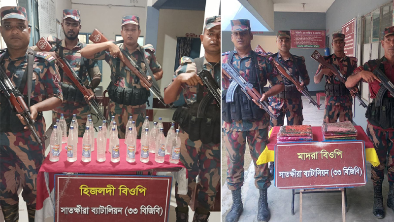 গোয়েন্দা তথ্যের ভিত্তিতে হিজলদী বিওপির আভিযানিক দল সীমান্ত পিলার ১৩/৩ এস এর ১৪ আরবি হতে প্রায় ২০০ গজ বাংলাদেশের অভ্যন্তরে কলারোয়া থানাধীন শিশুতলা নামক স্থান থেকে ২৪ বোতল ভারতীয় মদ আটক করে।