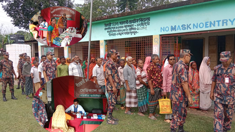 সীমান্তবাসীর পাশে বিজিবি, বৈকারীতে বিনামূল্যে চিকিৎসা সেবা ক্যাম্প