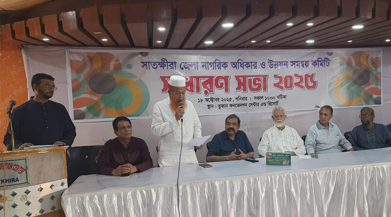 স্টাফ রিপোর্টার: সাতক্ষীরা জেলা নাগরিক অধিকার ও উন্নয়ন সমন্বয় কমিটির সাধারণ সভা-২০২৫ অনুষ্ঠিত হয়েছে।