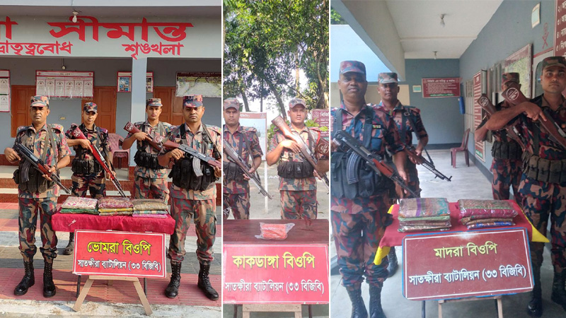 অন্যদিকে কাকডাঙ্গা বিওপির দুইটি পৃথক দল গেরাখালি ও কাকডাঙ্গা বলফিল্ড মোড় এলাকা থেকে ১ লাখ ২২ হাজার ৫০০ টাকার ভারতীয় শাড়ি ও ঔষধ জব্দ করে। মাদরা বিওপির দল আমবাগান ও রাজপুর এলাকা থেকে ১ লাখ ৫ হাজার টাকার ভারতীয় শাড়ি ও ঔষধ উদ্ধার করে। চান্দুরিয়া বিওপির দল গোয়ালপাড়া বরই বাগান এলাকা থেকে ২১ হাজার টাকার ভারতীয় শাড়ি আটক করে।