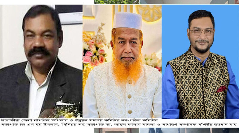 সাতক্ষীরা জেলা নাগরিক অধিকার ও উন্নয়ন সমন্বয় কমিটির নব-গঠিত কমিটির সভাপতি জিএম নুর ইসলাম, সিনিয়র সহ-সভাপতি ডা. আবুল কালাম বাবলা ও সম্পাদক বাবু