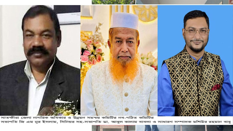 সাতক্ষীরা জেলা নাগরিক অধিকার ও উন্নয়ন সমন্বয় কমিটির নব-গঠিত কমিটির সভাপতি জিএম নুর ইসলাম, সিনিয়র সহ-সভাপতি ডা. আবুল কালাম বাবলা ও সম্পাদক বাবু