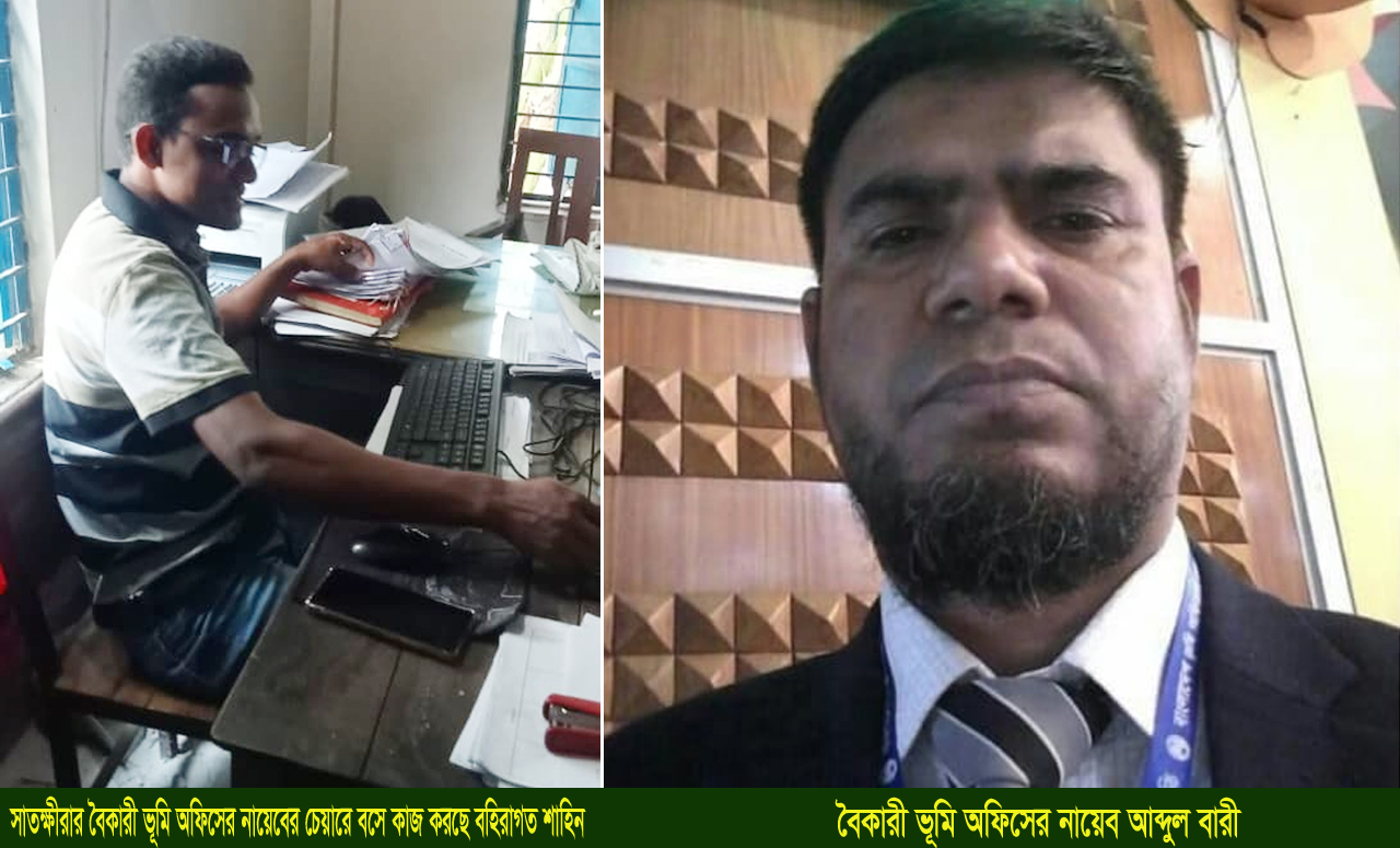 এদিকে সরজমিনে বৈকারী ভূমি অফিসে গিয়ে দেখা যায়, নায়েব আব্দুল বারীর চেয়ারে বসেই সরকারি কাজ করছেন শাহিন। আর নায়েব আছেন অন্যত্র। ঘটনার আকস্মিকতায় সাংবাদিকের উপস্থিতি টের পেয়ে নায়েব আব্দুল বারী তাকে ‘শটকে’ যেতে বলেন। তৎক্ষনাত ‘শটকে’ পড়ে শাহিন।