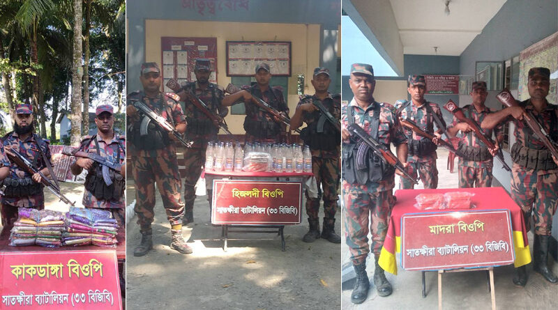 সাতক্ষীরায় বিজিবির অভিযানে ৫০ বোতল ভারতীয় মদসহ ৭ লক্ষাধিক টাকার মালামাল জব্দ