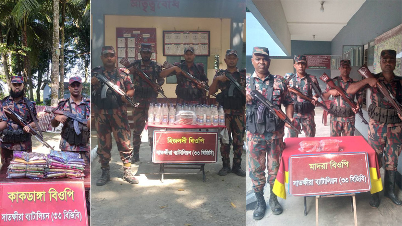 মঙ্গলবার (২২ অক্টোবর ২০২৫) সাতক্ষীরা ব্যাটালিয়ন (৩৩ বিজিবি) এর অধীনস্থ কাকডাঙ্গা, মদারা ও হিজলদী বিওপির দায়িত্বপূর্ণ এলাকায় এই অভিযান পরিচালিত হয়। অভিযানে বিজিবি সদস্যরা ৫০ বোতল ভারতীয় মদ, ভারতীয় ঔষধ ও শাড়ি উদ্ধার করে, যার আনুমানিক বাজারমূল্য ৭ লাখ ৫ হাজার টাকা।