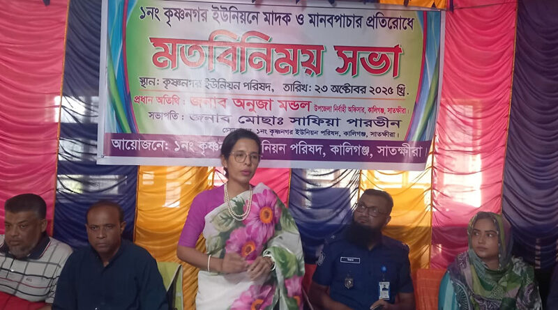 মাসুদ পারভেজ, কালিগঞ্জ: কালিগঞ্জ উপজেলার কৃষ্ণনগরে মাদক ও মানব পাচার প্রতিরোধ মতবিনিময় সভা অনুষ্ঠিত হয়েছে। বৃহস্পতিবার (২৩ অক্টোবর) বেলা ১১ টার দিকে ইউনিয়ন পরিষদের হলরুমে এ সভা অনুষ্ঠিত হয়।