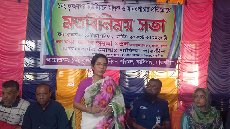 মাসুদ পারভেজ, কালিগঞ্জ: কালিগঞ্জ উপজেলার কৃষ্ণনগরে মাদক ও মানব পাচার প্রতিরোধ মতবিনিময় সভা অনুষ্ঠিত হয়েছে। বৃহস্পতিবার (২৩ অক্টোবর) বেলা ১১ টার দিকে ইউনিয়ন পরিষদের হলরুমে এ সভা অনুষ্ঠিত হয়।