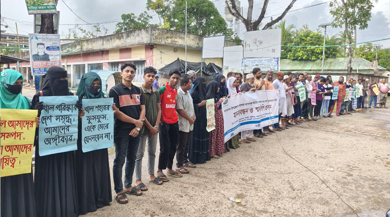 শ্যামনগরে খাল উন্মুক্তের দাবীতে ৬ ইউনিয়নের মানুষের মানববন্ধন