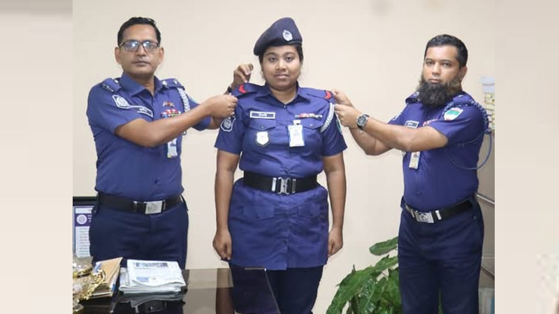 বুধবার (৩০ অক্টোবর) সাতক্ষীরা পুলিশ সুপারের কার্যালয়ে অনুষ্ঠিত এক অনাড়ম্বর অনুষ্ঠানে মেধা ও যোগ্যতার ভিত্তিতে কনস্টেবল থেকে নায়েক পদে পদোন্নতি পাওয়া পুলিশ সদস্য চাঁদনী খাতুনকে র্যাংক ব্যাজ পরিয়ে দেন পুলিশ সুপার।