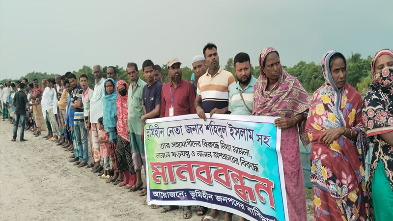কালিগঞ্জের চিংড়িখালিতে মিথ্যা মামলার প্রতিবাদে ভূমিহীনদের মানববন্ধন