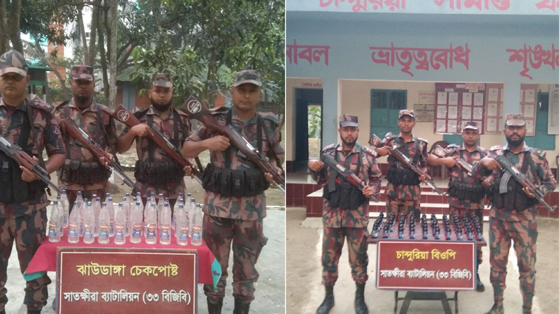 সাতক্ষীরা সীমান্তে বিজিবির অভিযানে ভারতীয় মদসহ সাড়ে ৫ লাখ টাকার পণ্য জব্দ
