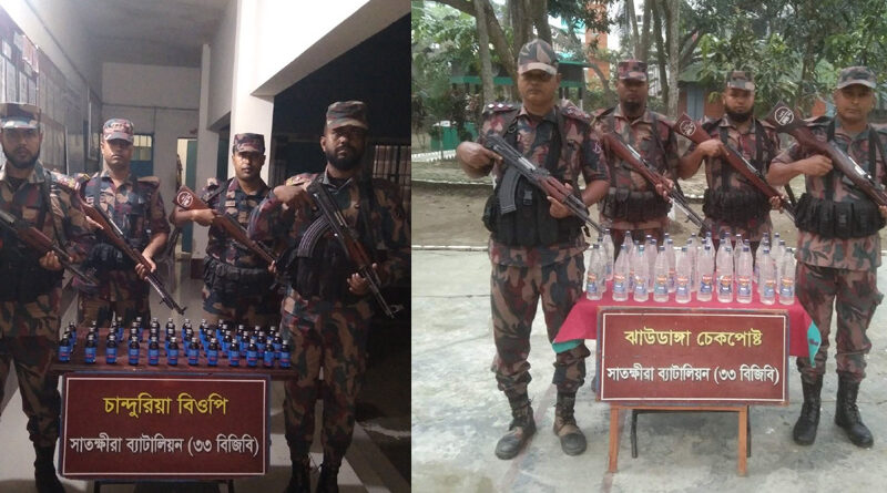 গোয়েন্দা তথ্যের ভিত্তিতে পরিচালিত এসব অভিযানে বিজিবি সদস্যরা ৩০ বোতল ভারতীয় মদ, ১০ কেজি গাঁজা ও ১৩৩ বোতল ভারতীয় ফেনসিডিল জব্দ করে।