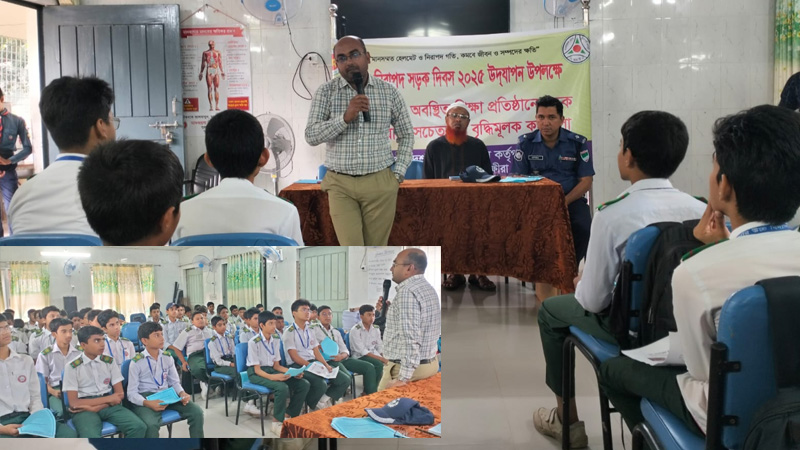 সাতক্ষীরা সরকারি বালক উচ্চ বিদ্যালয়ে সড়ক দূর্ঘটনারোধে প্রচারণা