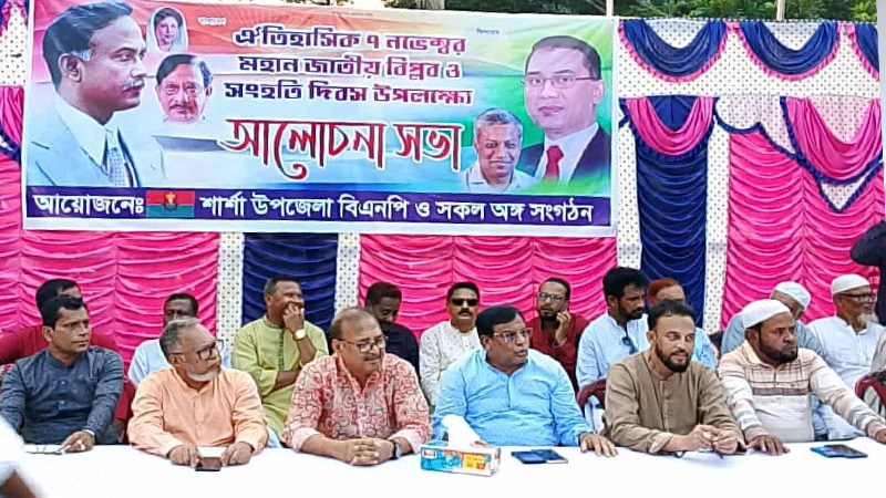 মোঃ হাসানূল কবীর, শার্শা: যশোরের শার্শা উপজেলা বিএনপি’র উদ্যোগে ৭ই নভেম্বর জাতীয় বিপ্লব ও সংহতি দিবস উপলক্ষে আলোচনা সভার আয়োজন করা হয়। শুক্রবার বিকাল ৪ টায় শার্শা উপজেলা বিএনপি’র দলীয় কার্যালয়ে এ অনুষ্ঠানের আয়োজন করা হয়।