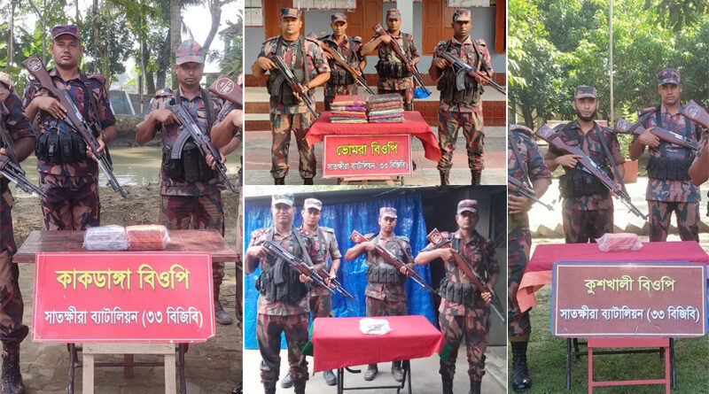 বৃহস্পতিবার (০৭ নভেম্বর) সাতক্ষীরা ব্যাটালিয়ন (৩৩ বিজিবি)-এর অধীনস্থ ভোমরা, ঘোনা, কুশখালী, কাকডাঙ্গা, মাদরা, হিজলদী ও সুলতানপুর বিওপি এবং বাঁকাল চেকপোস্টের দায়িত্বপূর্ণ এলাকায় এ বিশেষ অভিযান পরিচালনা করা হয়।