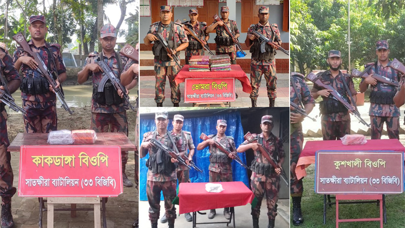বৃহস্পতিবার (০৭ নভেম্বর) সাতক্ষীরা ব্যাটালিয়ন (৩৩ বিজিবি)-এর অধীনস্থ ভোমরা, ঘোনা, কুশখালী, কাকডাঙ্গা, মাদরা, হিজলদী ও সুলতানপুর বিওপি এবং বাঁকাল চেকপোস্টের দায়িত্বপূর্ণ এলাকায় এ বিশেষ অভিযান পরিচালনা করা হয়।