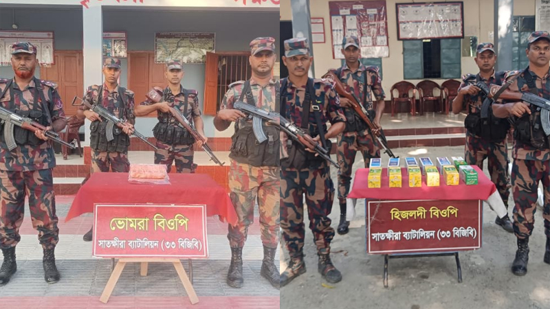 গোয়েন্দা তথ্যের ভিত্তিতে হিজলদী বিওপির বিশেষ আভিযানিক দল কলারোয়া উপজেলার শিশুতলা আমবাগান এলাকা থেকে ১০ হাজার ৮০০ টাকার ভারতীয় আগরবাতি আটক করে। এছাড়া, কালিয়ানী বিওপির দল সাতক্ষীরা সদর উপজেলার আলীর ঘের এলাকা থেকে ৭০ হাজার টাকার ভারতীয় ঔষধ জব্দ করে। মাদরা বিওপির আভিযানিক দল কলারোয়া উপজেলার ভাদিয়ালী এলাকা থেকে ১ লাখ ৪০ হাজার টাকার ভারতীয় ঔষধ এবং ভোমরা বিওপির দল সাতক্ষীরা সদর উপজেলার লক্ষীদাড়ি এলাকা থেকে আরও ১ লাখ ৪০ হাজার টাকার ঔষধ জব্দ করে।