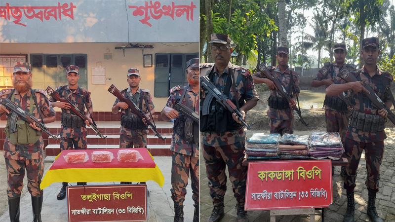 মঙ্গলবার (১১ নভেম্বর) সাতক্ষীরা ব্যাটালিয়ন (৩৩ বিজিবি)-এর অধীনস্থ ভোমরা, কালিয়ানী, কুশখালী, ঘোনা, তলুইগাছা, কাকডাঙ্গা ও মাদরা বিওপি দায়িত্বপূর্ণ এলাকায় এসব অভিযান পরিচালিত হয়। এতে ভারতীয় ঔষধ ও শাড়ি আটক করা হয় যার আনুমানিক মূল্য ৬ লাখ ৫৫ হাজার টাকা।