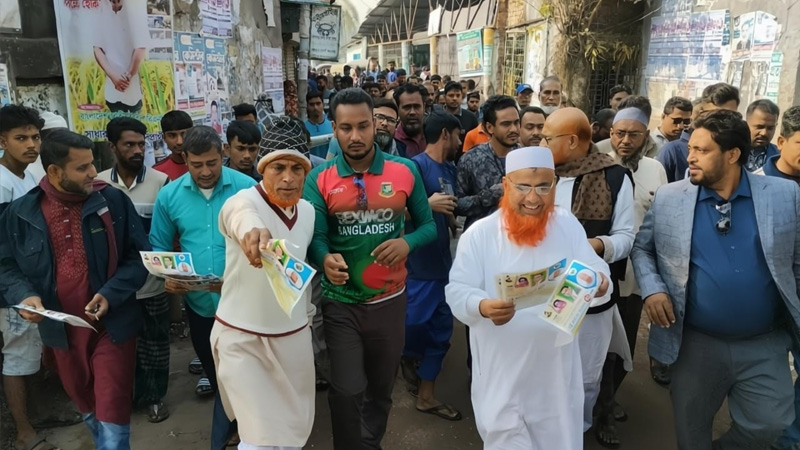 কালিগঞ্জে ধানেরশীষের প্রার্থী কাজী আলাউদ্দীনের লিফলেট বিতরণ