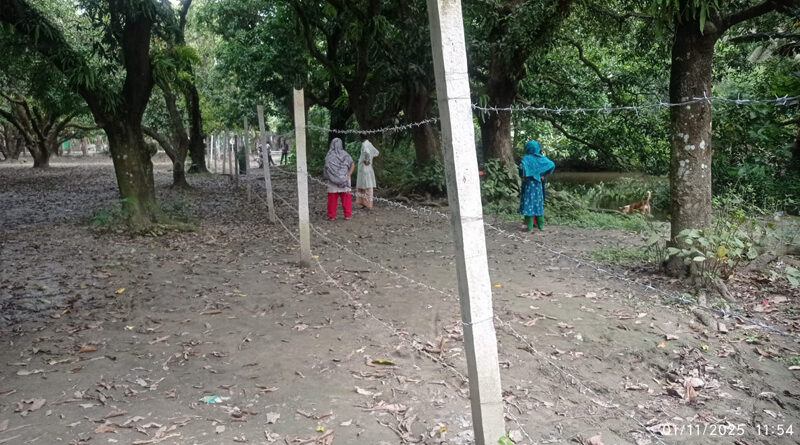 ঘিরে ফেলেছে। এই আম বাগানে এলাকায় ছেলে মেয়েরা খেলাধুলা করে। ধানের সময় স্থানীয়রা ধান উঠিয়ে এখানে ধান ঝাড়ে এবং পরিষ্কার করে শুকাতে দেয়। অনেক মানুষ এই রাস্তা দিয়ে চলাচল করে। ভূমিদস্যু গ্রুপ এগুলো বন্ধ করে মানুষের চলাচলে প্রতিবন্ধকতা সৃষ্টি করছে। তারা একটি রাজনৈতিক দলের পরিচয় দিচ্ছে। কিন্তু আমরা খোঁজ খবর নিয়েছি তারা এর আগে আওয়ামী লীগ সরকারের আমলে পুলিশের মহাপরিদর্শক বেনজীর আহমেদের পরিচয় দিয়ে ঢাকাসহ বিভিন্ন এলাকায় বিভিন্ন মানুষের জায়গা জমি দখল করে নিতো। সরকার পতনের পর এলাকায় ফিরে একটি রাজনৈতিক দলের পরিচয় দিয়ে এখন বিভিন্ন জায়গায় জমি দখল করে বেড়াচ্ছে। এতে করে ওই রাজনৈতিক দলের ভোট কমে যাচ্ছে। আমরা এদের বিচার চাই।