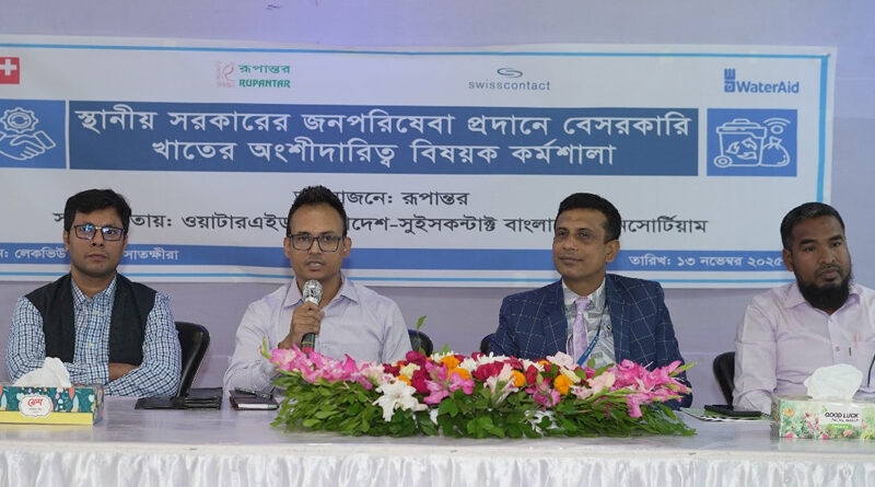 উক্ত কর্মশালায় মোঃ সাইদুজ্জামান পুলক, প্রাইভেট সেক্টর এংগেজমেন্ট স্পেশালিস্ট, এবং সাব্বির রহমান খান, কমিউনিকেশন অ্যান্ড নলেজ ম্যানেজমেন্ট এক্সপার্ট, গোফরইমপ্যাক্ট প্রকল্প। তাঁরা স্থানীয় জনপরিসেবায় বেসরকারি খাতের সম্ভাবনা, চ্যালেঞ্জ এবং যৌথ উদ্যোগের সুফল নিয়ে বিস্তারিত আলোচনা করেন। কর্মশালার সার্বিক তত্ত্বাবধান ছিলেন সবুজ কুমার সাহা, কো-অর্ডিনেটর, মিউনিসিপ্যালিটি লিয়াজোঁ, রূপান্তর।