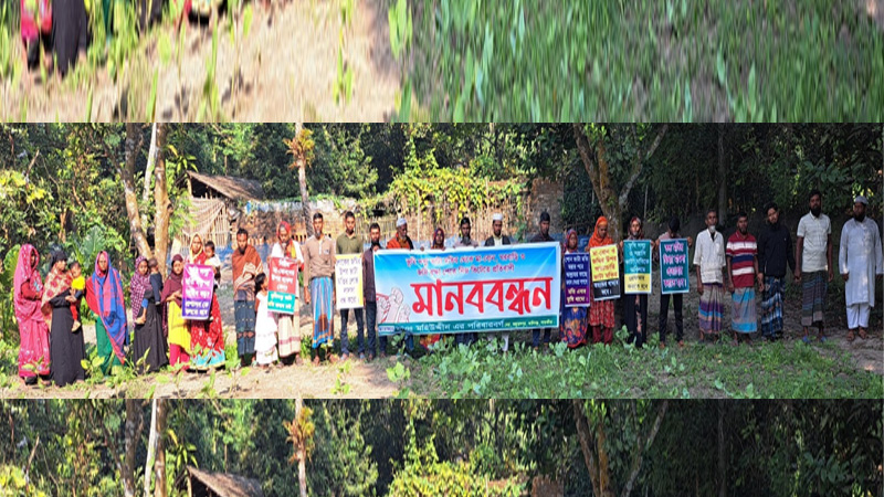 ভূমি সন্ত্রাসীদের হামলা-মামলা থেকে রক্ষা পেতে কালিগঞ্জে ব্যাতিক্রমি ‘গৃহ-মানববন্ধন’