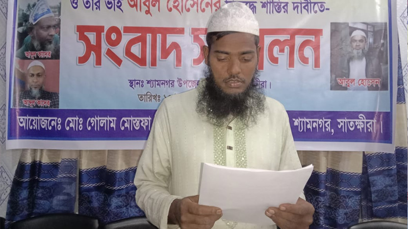 ১৮ নভেম্বর (মঙ্গলবার) শ্যামনগর উপজেলা প্রেস ক্লাবে শ্যামনগরের কৈখালী ইউনিয়নের মেন্দিনগর গ্রামের জমাত আলী সরদারের পুত্র সৌদি প্রবাসী গোলাম মোস্তফা ক্রন্দনরত অবস্থায় জানান,নুরনগর ইউনিয়নের রামজীবনপুর গ্রামের আক্তার সরদারের পুত্র তার খালাতো ভাই আব্দুল কাদের ৩২ লক্ষ টাকা ও আবুল হোসেন ৪ লক্ষ টাকা জমি বিক্রয়ের প্রলোভন দেখিয়ে প্রতারনা করে টাকা আত্মসাৎ করায তিনি এখন পথের ভিখারী। আব্দুল কাদের নুরনগর ইউনিয়ন আওয়ামীলীগের সহ-সভাপতি ও সাবেক ইউপি সদস্য এবং তার ভাই আবুল হোসেন আওয়ামীলীগের সক্রিয় কর্মী হওয়ার সুবাদে তাদের জমি মেন্দিনগরে থাকায় ঐ জমি বিক্রয়ের প্রলোভন দেখিয়ে ফুঁসলিয়ে গোলাম মোস্তফার কাছ থেকে টাকা গ্রহণ করেন।
