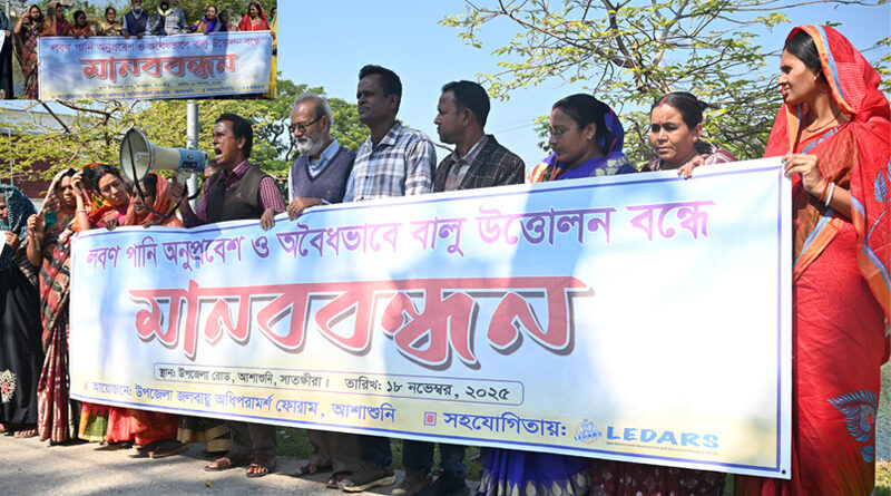আশাশুনিতে লোনা পানির অনুপ্রবেশ ও বালু উত্তোলন বন্ধে মানববন্ধন, স্মারকলিপি প্রদান