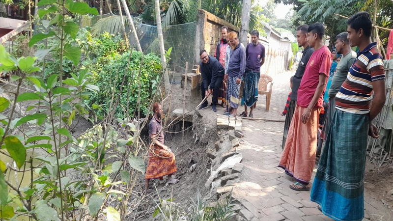কালিগঞ্জে ভেঙ্গেপড়া পুকুরপাড়ে ১শ’ ফুট পাইলিং কাজের উদ্বোধন