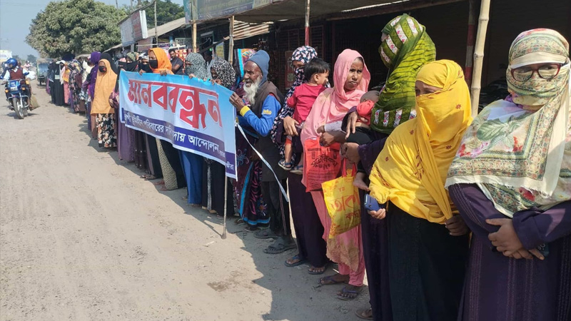 কালিগঞ্জে সড়ক ও জনপদের জমি থেকে ভূমিহীনদের উচ্ছেদের প্রতিবাদে মানববন্ধন