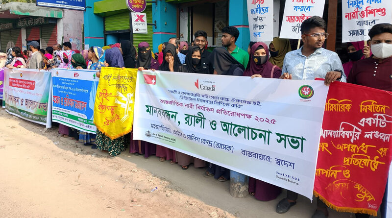 স্টাফ রিপোর্টার: ‘নারী ও কন্যা শিশুর প্রতি সহিংসতা বন্ধে ঐক্যবদ্ধ হই, ডিজিটাল নিরাপত্তা নিশ্চিত করি’- প্রতিপাদ্যকে সামনে রেখে সাতক্ষীরায় আন্তর্জাতিক নারী নির্যাতন প্রতিরোধ পক্ষ ২০২৫ উপলক্ষে মানববন্ধন, র্যালি ও আলোচনা সভা অনুষ্ঠিত হয়েছে।