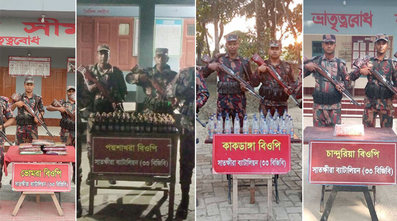 সাতক্ষীরায় বিপুল পরিমান ভারতীয় মদ, সিরাপ ও ঔষধসহ অন্যান্য চোরাচালানী পন্য জব্দ