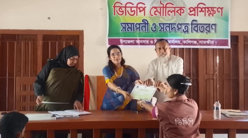 কালিগঞ্জ দক্ষিণ শ্রীপুরে ভিডিপি’র ১০ দিনব্যাপী মৌলিক প্রশিক্ষণ সমাপ্ত,ও সনদ বিতরণ