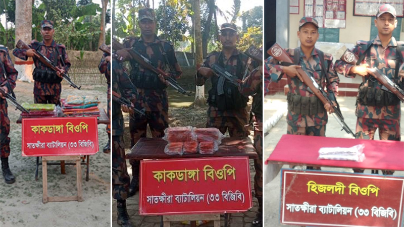 বিজিবি সূত্রে জানা যায়, গোপন গোয়েন্দা তথ্যের ভিত্তিতে কাকডাঙ্গা বিওপির পৃথক দুটি আভিযানিক দল মেইন পিলার ১৩/৩ এস এর ৪ ও ৫ আরবি এলাকার কেরাগাছি ও গেড়াখালি সীমান্ত থেকে ৪,০২,৫০০ টাকার ভারতীয় ঔষধ ও শাড়ি আটক করে।
