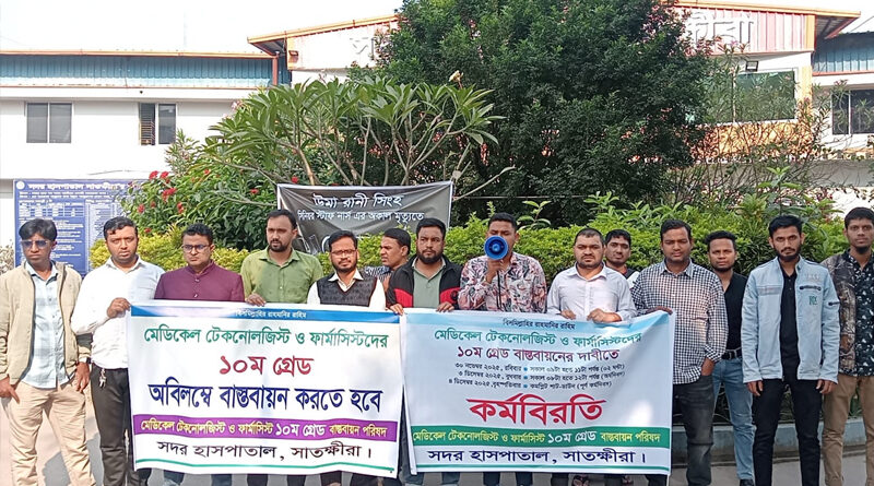 সাতক্ষীরায় মেডিকেল টেকনোলজিস্ট ও ফার্মাসিস্টদের ১০ম গ্রেড বাস্তবায়নের দাবীতে কর্মবিরতি