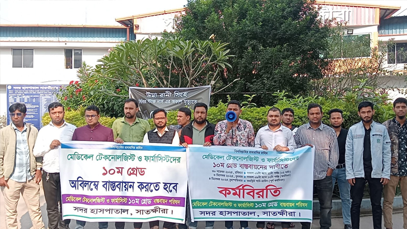 সাতক্ষীরায় মেডিকেল টেকনোলজিস্ট ও ফার্মাসিস্টদের ১০ম গ্রেড বাস্তবায়নের দাবীতে কর্মবিরতি