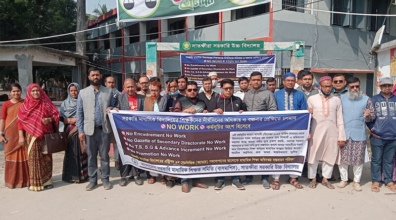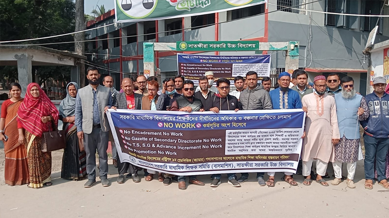 সোমবার (১ ডিসেম্বর) সকাল থেকে বিদ্যালয়ের প্রধান ফটকের সামনে বাংলাদেশ সরকারি মাধ্যমিক শিক্ষক সমিতি (বাসমাশিস) সাতক্ষীরা সরকারি উচ্চ বিদ্যালয় ইউনিটের আয়োজনে এ কর্মসূচি পালন করেন শিক্ষকরা।