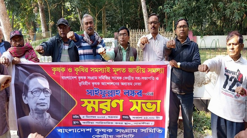 স্টাফ রিপোর্টার: বাংলাদেশ কৃষক সংগ্রাম সমিতির সাবেক কেন্দ্রীয় সহ-সভাপতি কৃষকনেতা সাইফুল্লাহ লস্কর-এর ১৬তম মৃত্যুবার্ষিকী উপলক্ষে শুক্রবার (৫ ডিসেম্বর ২০২৫) বেলা ১২টায় সাতক্ষীরা শহরের কাটিয়া লস্করপাড়ার সমাধিস্থলে পুষ্পমাল্য অর্পন করা হয়।