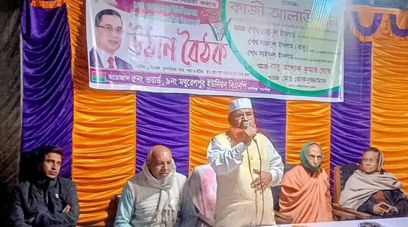 উঠান বৈঠকে উপস্থিত ছিলেন মথুরেশপুর এলাকার সোনাতনী ধর্মাবলম্বী শতশত নারী পুরুষসহ বিএনপির বিভিন্ন পর্যায়ের নেতৃবৃন্দ।