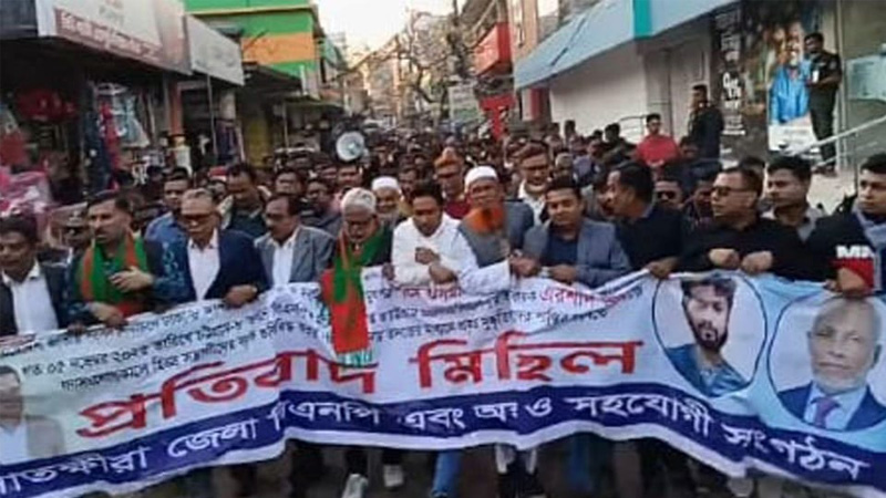 স্টাফ রিপোর্টার: আসন্ন জাতীয় সংসদ নির্বাচনে ঢাকা-৮ আসনের সম্ভাব্য স্বতন্ত্র প্রার্থী ও ইনকিলাব মঞ্চের মুখপাত্র শরিফ ওসমান হাদির ওপর গুলিবর্ষণের ঘটনার প্রতিবাদে সাতক্ষীরায় বিক্ষোভ মিছিল ও প্রতিবাদ সমাবেশ করেছে জেলা বিএনপি।