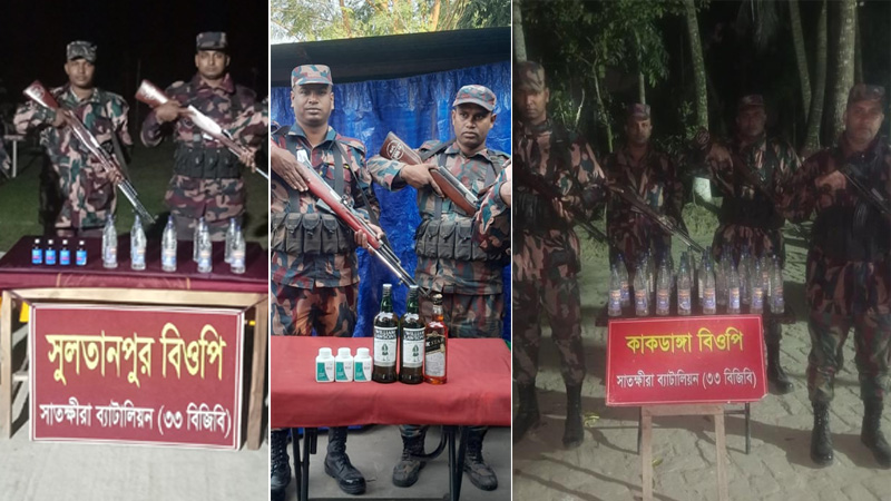 কাকডাঙ্গা বিওপির বিশেষ আভিযানিক দল মেইন পিলার-১৩/৩ এস এর ০৬ আরবি হতে আনুমানিক ৩০০ গজ বাংলাদেশের অভ্যন্তরে কলারোয়া থানাধীন ভাদিয়ালী এলাকা থেকে ৩৩ হাজার টাকা মূল্যের ভারতীয় মদ উদ্ধার করে।
