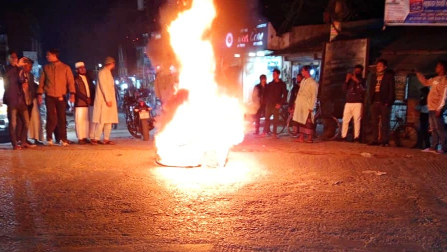 শুক্রবার (১৯ ডিসেম্বর) সন্ধ্যা ৬টার দিকে তালা বাজারের তিন রাস্তার মোড়ে এ বিক্ষোভ কর্মসূচি পালিত হয়। এ সময় বিক্ষোভকারীরা টায়ার জ্বালিয়ে সড়ক অবরোধ করে বিভিন্ন স্লোগানের মাধ্যমে হত্যাকারীদের অবিলম্বে গ্রেপ্তার ও বিচারের দাবি জানান।