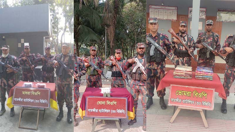 শুক্রবার (২৬ ডিসেম্বর) সাতক্ষীরা ব্যাটালিয়ন (৩৩ বিজিবি)-এর অধীনস্থ ভোমরা ও মাদরা বিওপি এবং বাঁকাল চেকপোষ্টের দায়িত্বপূর্ণ এলাকায় গোয়েন্দা তথ্যের ভিত্তিতে এ বিশেষ অভিযান পরিচালনা করা হয়।