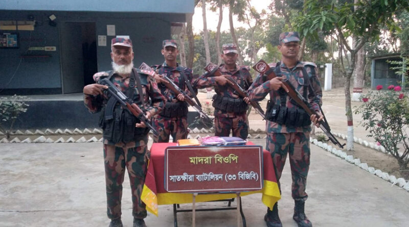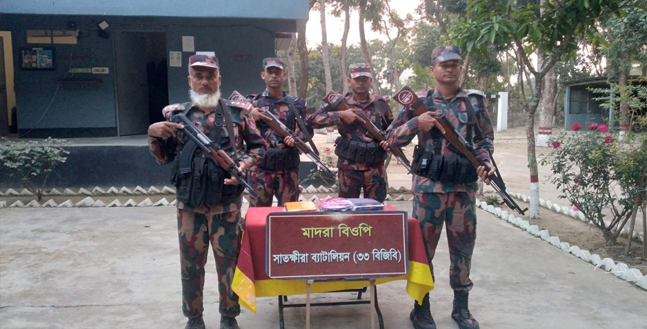 বিজিবি সূত্র জানায়, মাদরা বিওপির একটি বিশেষ আভিযানিক দল মেইন পিলার-১৩/৩ এস-এর ১৩ আরবি থেকে আনুমানিক ২০০ গজ বাংলাদেশের অভ্যন্তরে কলারোয়া থানাধীন চান্দা মাঠ এলাকায় অভিযান চালিয়ে ৫২ হাজার ৫০০ টাকা মূল্যের ভারতীয় শাড়ি জব্দ করে।