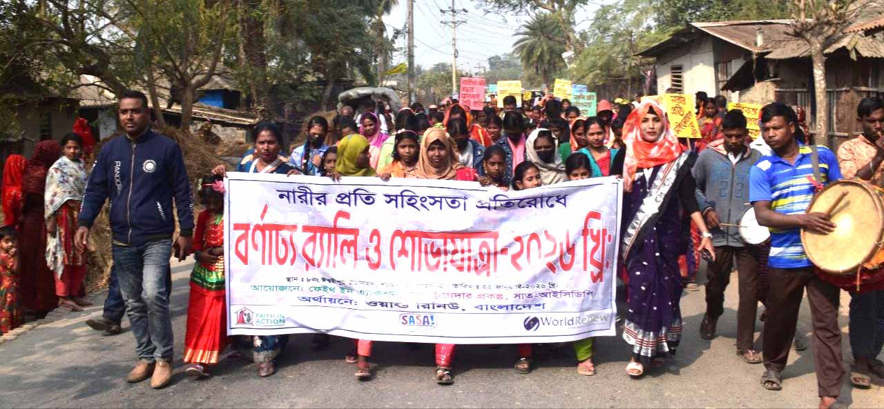 সভাপতির বক্তব্যে ফেইথ ইন এ্যাকশনের প্রোগ্রাম কো-অর্ডিনেটর তীমন বাড়ৈ বলেন, নারীর প্রতি সহিংসতা রোধে সবচেয়ে বড় শক্তি হলো সামাজিক ঐক্য ও সচেতনতা। পরিবার, সমাজ ও রাষ্ট্র একসঙ্গে কাজ করলেই সহিংসতামুক্ত পরিবেশ গড়ে তোলা সম্ভব। আমাদের প্রত্যেককে দায়িত্বশীল হতে হবে এবং অন্যায়ের বিরুদ্ধে সোচ্চার থাকতে হবে। এই আন্দোলনকে আমরা একটি স্থায়ী সামাজিক অঙ্গীকারে রূপ দিতে চাই।