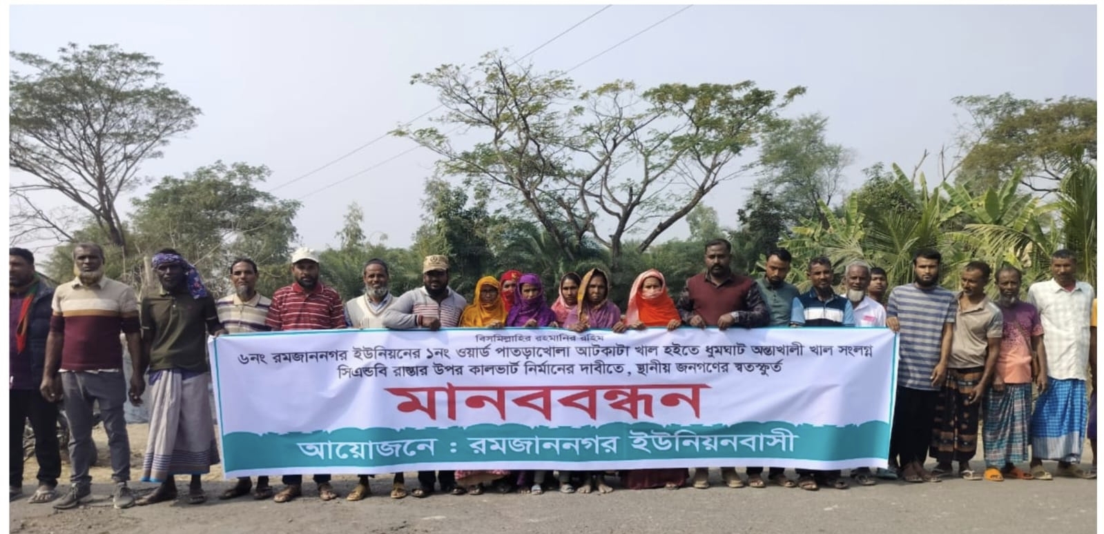 পানি নিষ্কাশনে কালভার্ট নির্মাণের দাবিতে শ্যামনগরে মানববন্ধন