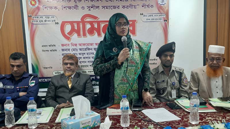 স্টাফ রিপোর্টার: “মাদক নয়, মৃত্যু নয়—মাদকমুক্ত জীবন চাই” এই প্রতিপাদ্যকে সামনে রেখে মাদকাসক্তি মুক্ত শিক্ষাঙ্গণ ও সমাজ বিনির্মাণে শিক্ষক, শিক্ষার্থী ও সুশীল সমাজের করণীয় শীর্ষক এক সেমিনার অনুষ্ঠিত হয়েছে।